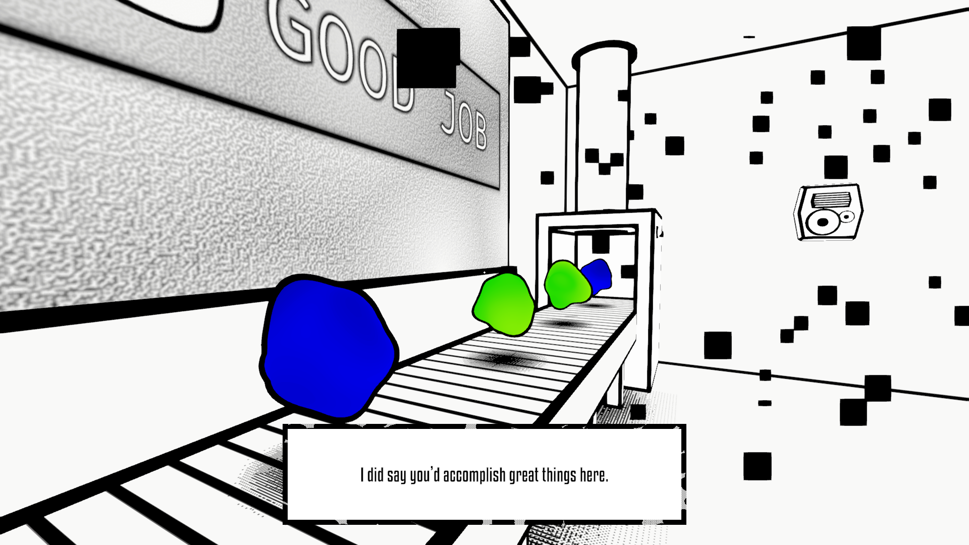 That was fun! Bug-free! Other than the voice-over cutting off at some moments, it was good! Love the graphics! Did you make the shader yourself? Or do Pixel Art for everything?